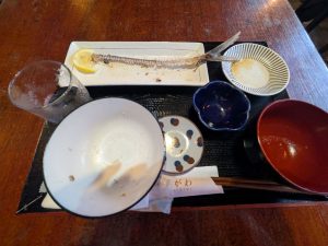 屋久島名物のトビウオ(現地では「トッピー」と呼びます)の唐揚げを実食!羽がそのままピンと張った豪快な姿と、サクサクの食感がたまりませんでした。
