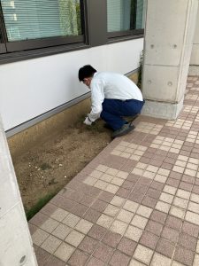 弊社では、環境美化活動を定期的に行います。社屋周辺のごみ拾いと草取りです。