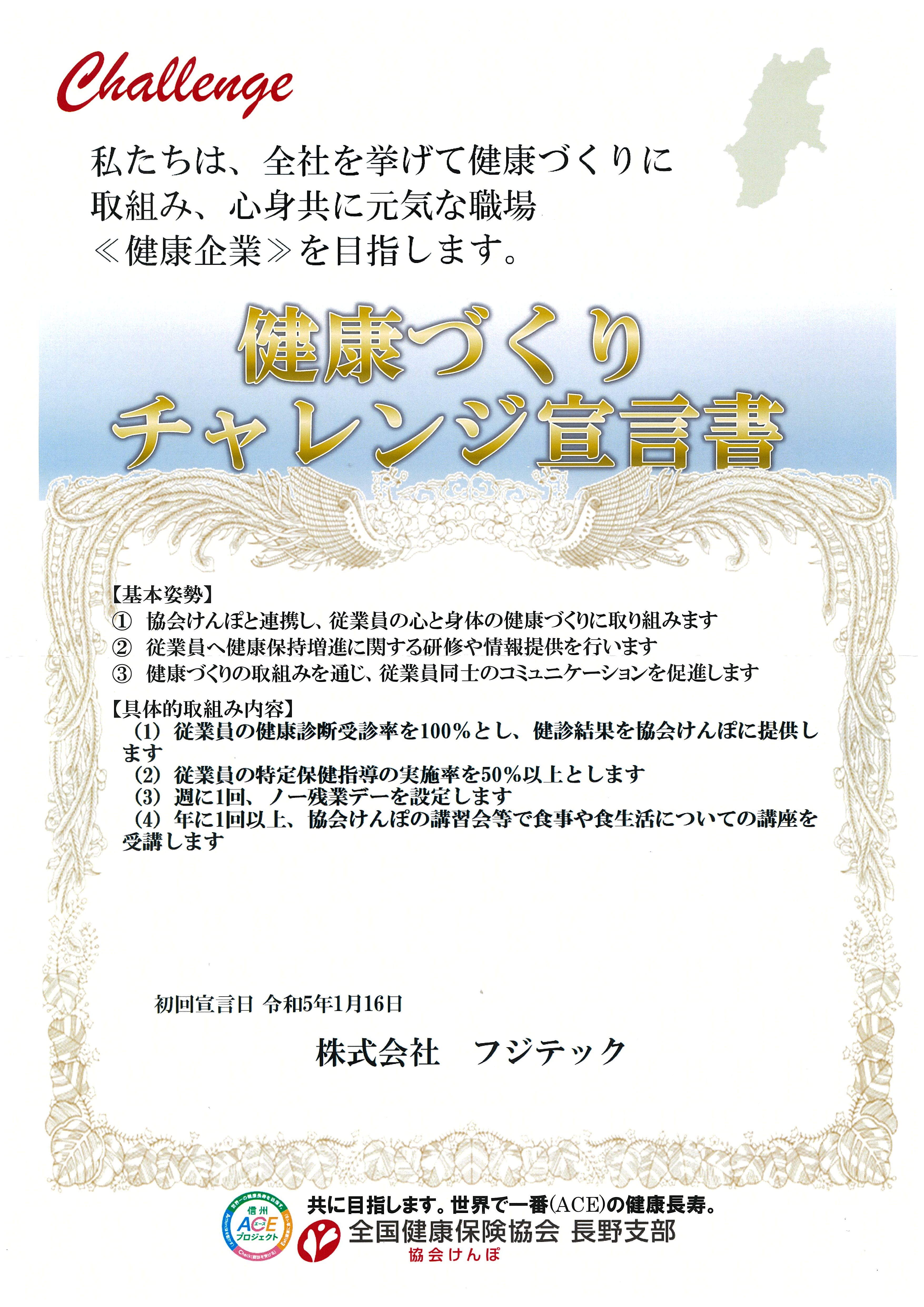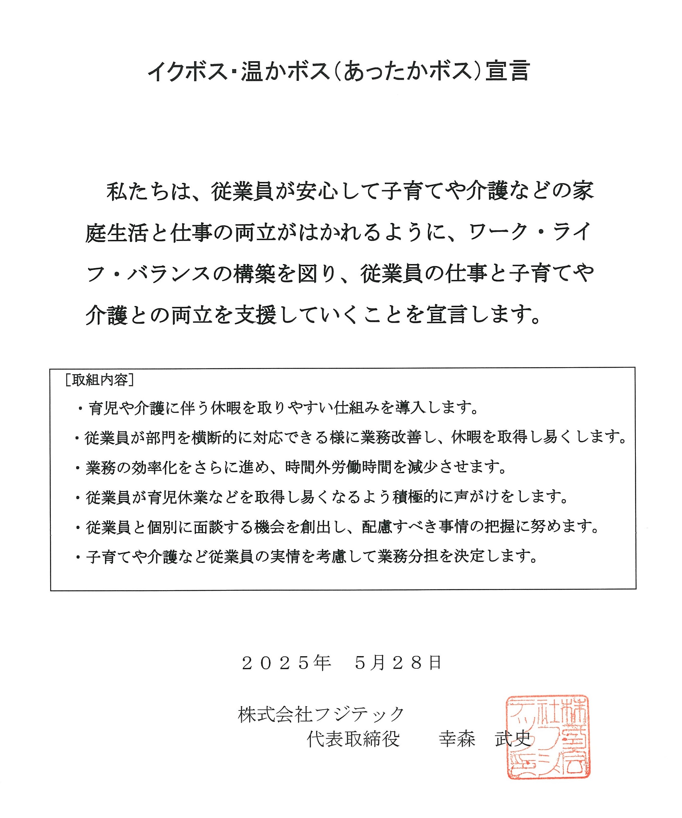 フジテックでは、この制度に基づき取り組み内容を見直し、新たな宣言を行いました。